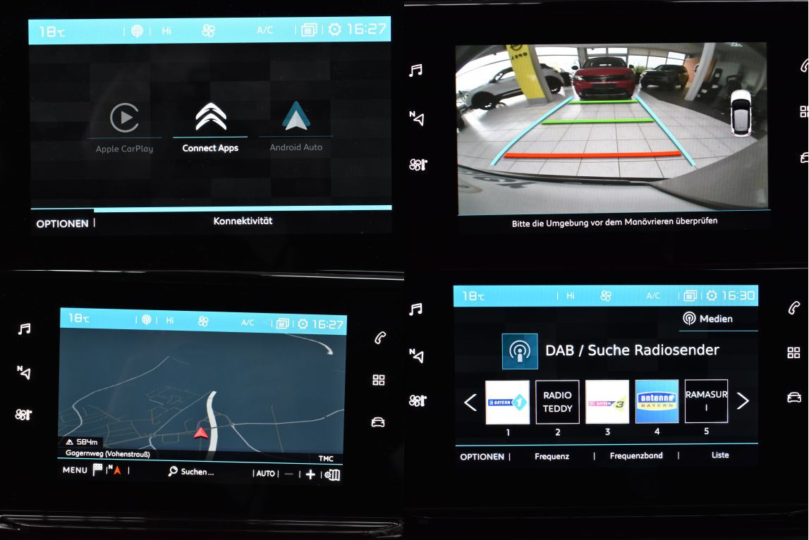 Citroen Navigationssystem Klimaautomatik LED-Scheinwerfer 6-Gang Schaltgetriebe Radioempfang digital (DAB) Android Auto Apple CarPlay Musikstreaming integriert Touch – Display Einparkhilfe Parkpilot PDC hinten Rückfahrkamera Außenspiegel elektrisch / anklappbar Fensterheber elektrisch Zentralverriegelung mit Fernbedienung Regensensor Lichtsensor (Tunnellicht) Solar-Protect-Heckverglasung, dunkel getönt Frontkamera mit Verkehrsschilderkennung Spurhalteassistent Geschwindigkeitsregler (Tempomat) Bluetooth Freisprecheinrichtung Berganfahrassistent Airbag Fahrer/Beifahrer Seitenairbag vorn Kopfairbagsystem Anti-Blockier-System (ABS) Antischlupfregelung (ASR) Elektron. Stabilitäts-Programm (ESP) Getriebe 6-Gang Leichtmetallräder 16” Nebelscheinwerfer Außenspiegel Schwarz Allwetterreifen Isofix-Aufnahmen für Kindersitz an Rücksitz Metallic-Lackierung Otto-Partikelfilter (GPF) Reifendruck-Kontrollsystem Servolenkung Sitz vorn links höhenverstellbar Stop-Start-Anlage Tagfahrlicht LED Rücksitzbank klappbar 1/3-2/3 Schadstoffarm nach Abgasnorm Euro 6d Elektr. Wegfahrsperre Fahrersitz höhenverstellbar Heckscheibenwischer Leuchtweitenregulierung 12V Steckdose Dachantenne Außentemperaturanzeige Ausstattung Pure Tech Max Karosserie 5-türig E10 geeignet Geschwindigkeits-Begrenzungsanlage